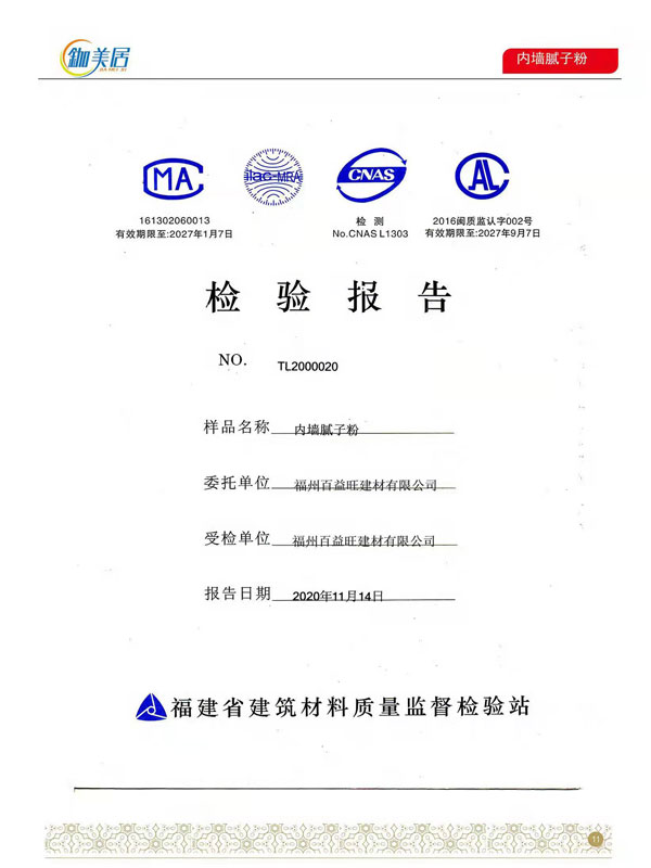 內(nèi)墻膩?zhàn)臃酆细駡?bào)告