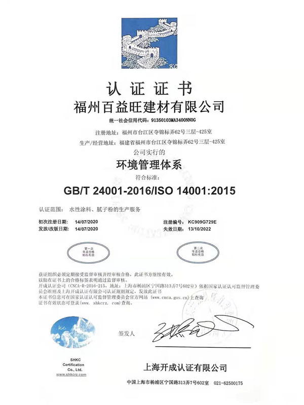 環(huán)境管理體系認(rèn)證證書